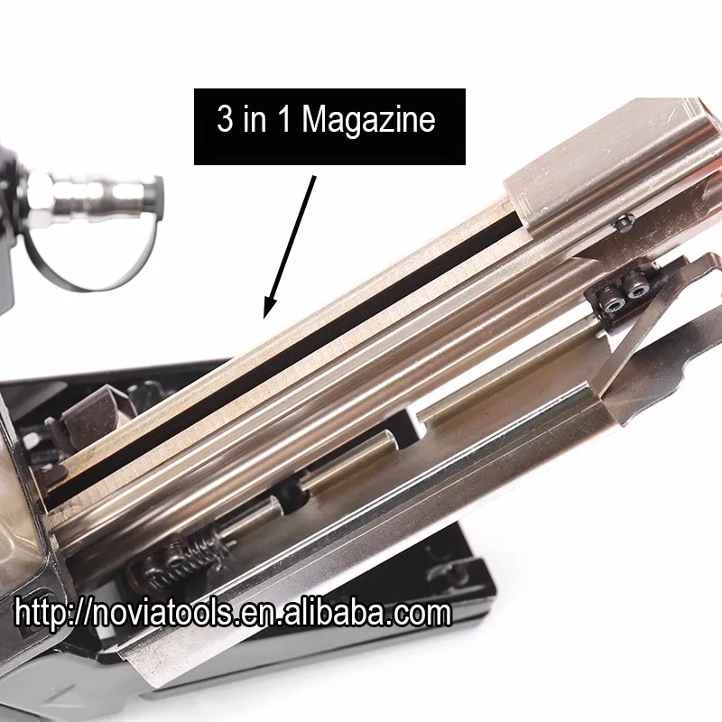 4) 3-in-1 magazine with a capacity of 90-100 staples or cleats
