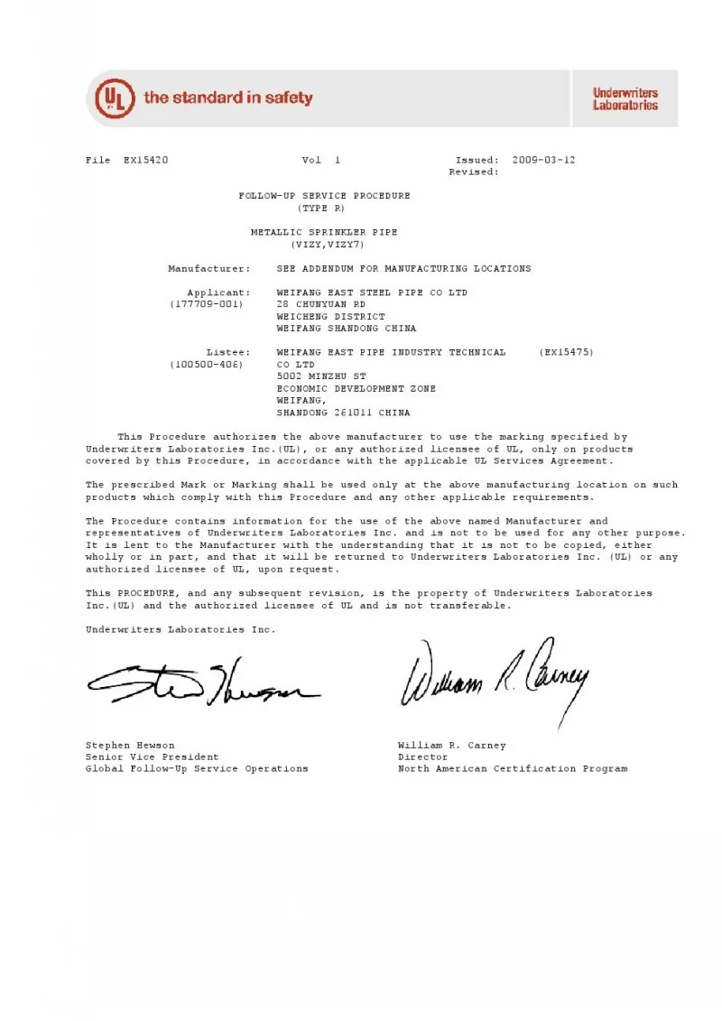 As the leading manufacturer and supplier of fire fighting system, we have both UL & FM& GOST certificates for fire protection steel pipes and fittings. With the most advanced pipe processing technology and equipment, we specilize in providing more convenient & reliable fire fighting products and services to the field of energy, industry and civil.
