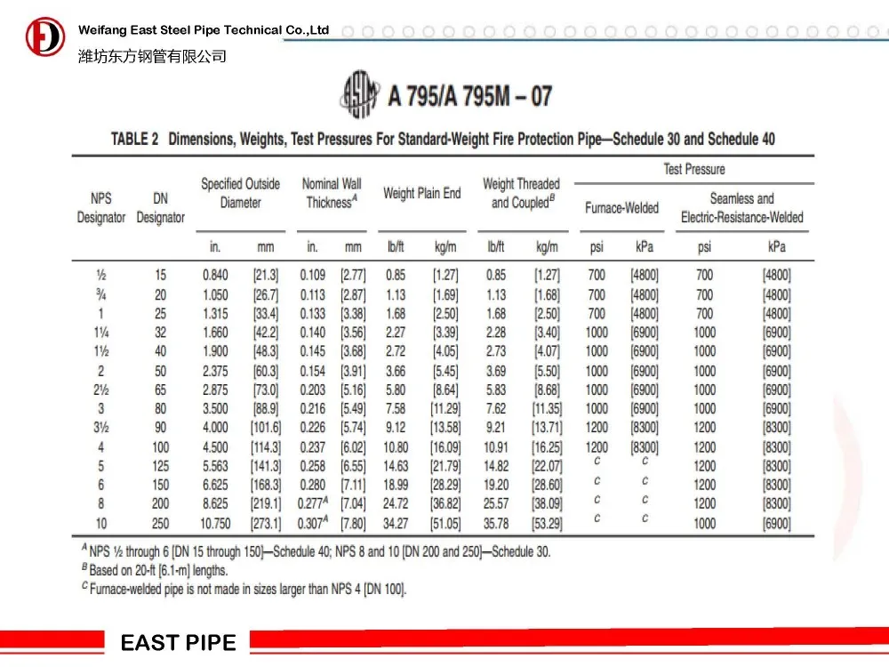 ASTM A135 and A795 Type E Certified