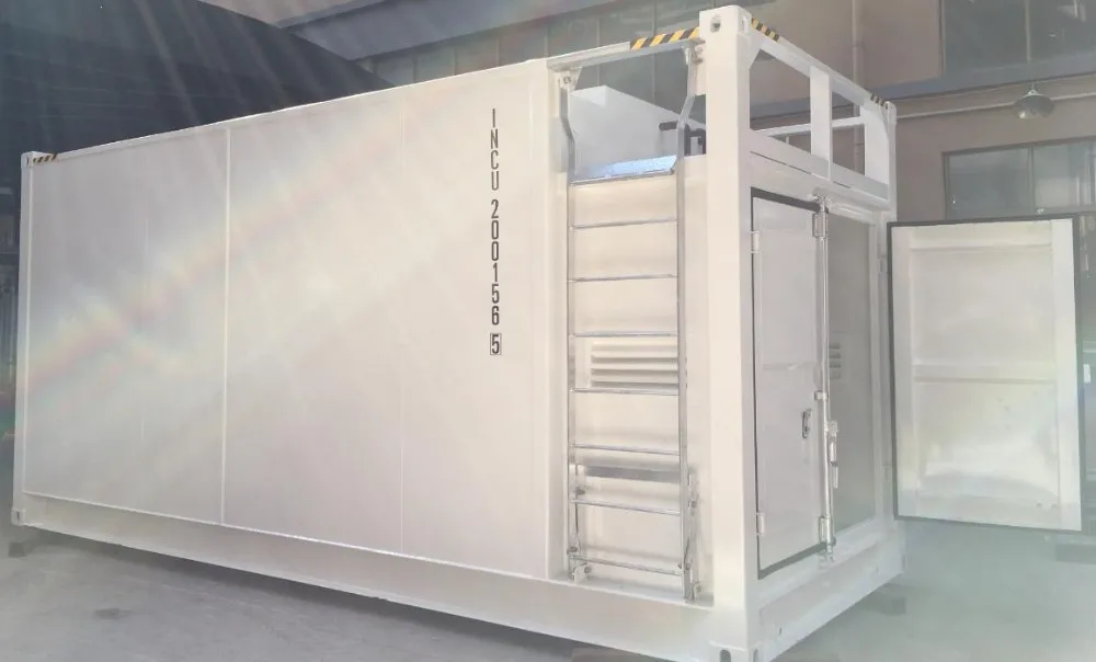ISO контейнер с вентиляционными сетками, съемной лестницей, крышами, крышкой доступа к люку бака, удерживающим лотком и нескользящей решеткой под площадью диспенсера.