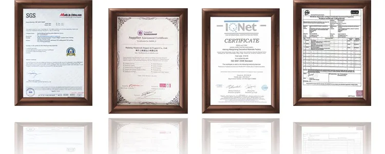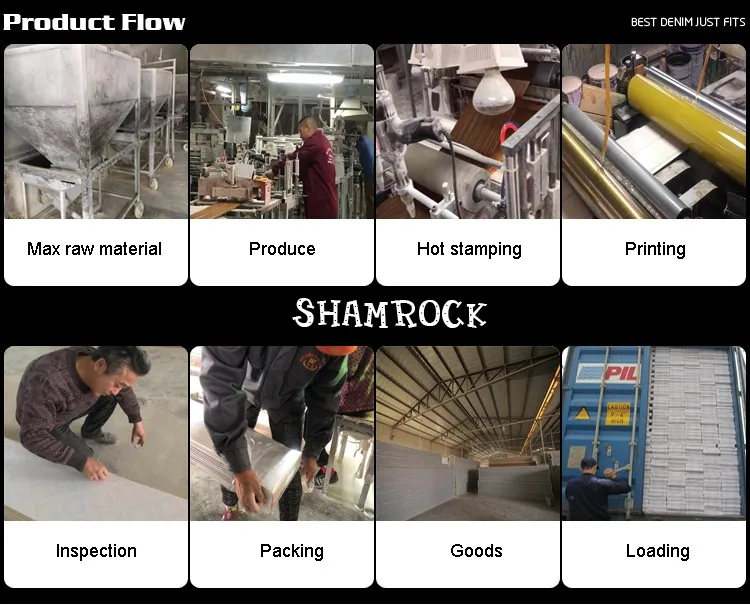 Haining shamrock Import & Export co., Ltd загружается в Чжэцзян Китай, который является производителем имеет экспортный опыт в течение 14 лет. Основное производство-ПВХ панель; ПВХ потолочная панель; ПВХ стеновая панель; ПВХ доска; ПВХ мрамор; клипса ПВХ и так далее.