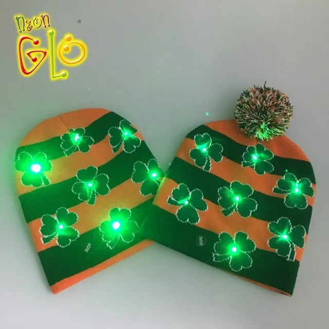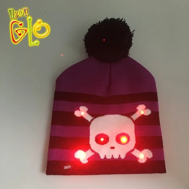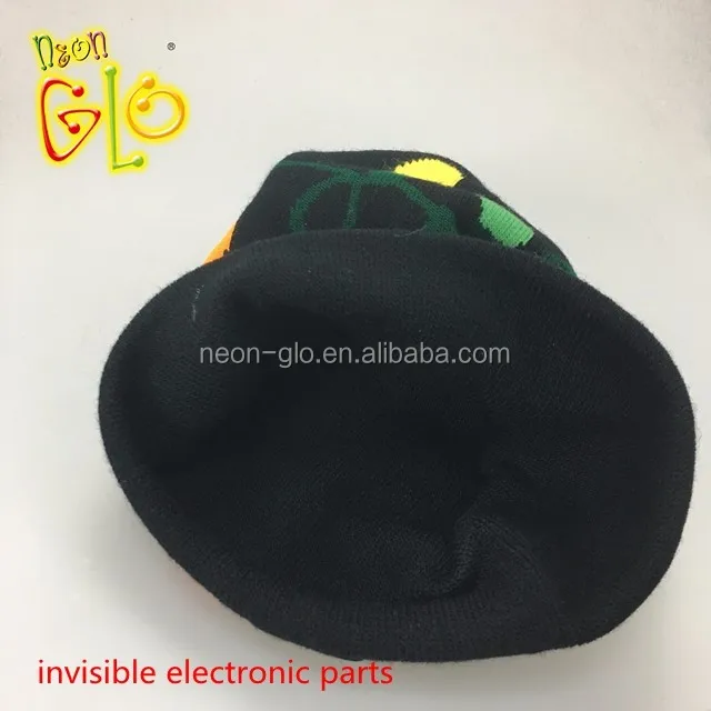 Our Light Up Knitting Hat LED Christmas Beanie Hat is with 6 LEDs, 3 lighting modes which can be changed by pressing the button. The design is typical for Christmas. Your own design is acceptable also. It comes with 1 pc CR2032 battery and not replaceable.
