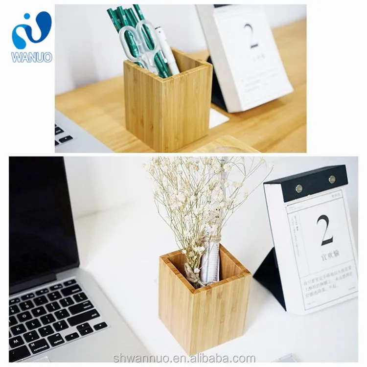 WanuoCraft пользовательские принимаем бамбуковый деревянный Настольный держатель для карандашей