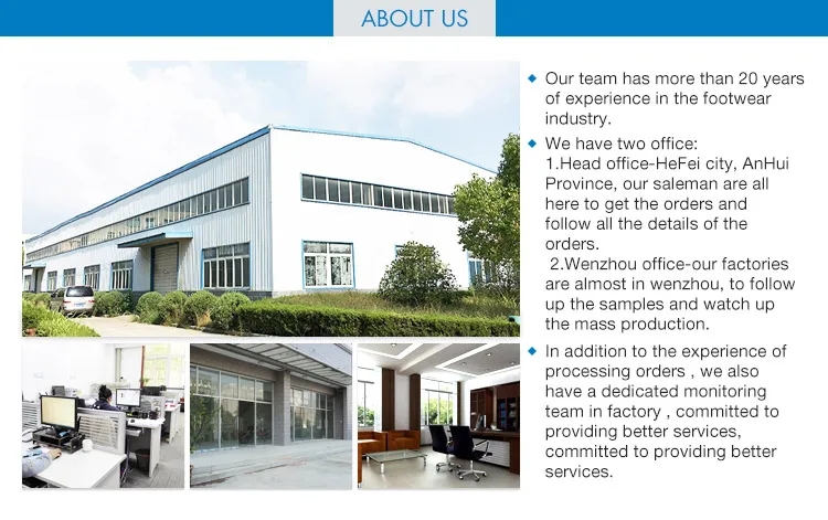 A: We are factory specialized in shoes for more than 20 years Which located in wenzhou Named Wenzhou Weidu Shoes Factory .