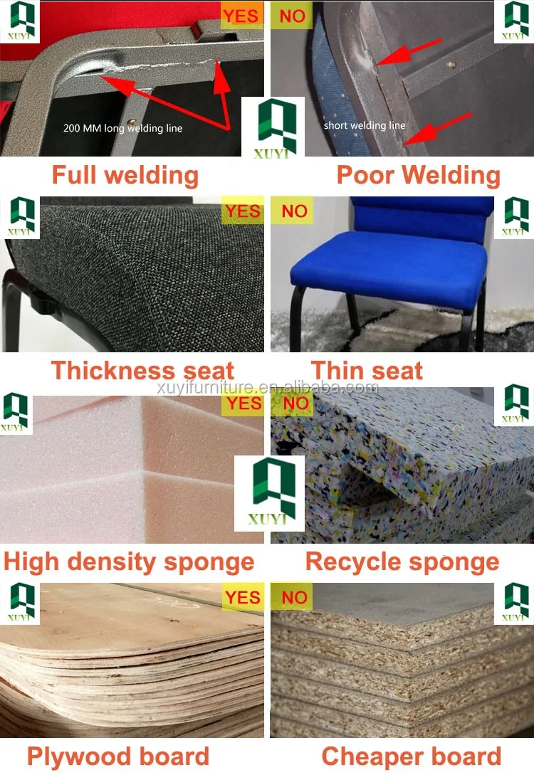 Foshan Xuyi Furniture Co., Ltd, мы профессионалы в банкетном кресле, столе, покрытии стула, скатерти, диван в свадебном декоре, сцене и так далее. Церковные стулья-наша основная товары, мы используем губку высокой плотности для сиденья и спины, мы отказываемся от плохого и перерабатывающего материала для товары, таким образом, вы увидите качество при размещении заказ у нас, также мы используем трубку 1,2 мм для рамы стула. он прочнее и может использоваться в течение длительного времени.