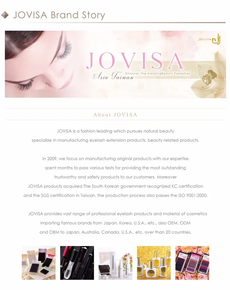 We are one of the famous eyelash extension brand in Taiwan and have years of R&D and manufacturing experience. We combine the best technology, makeup artists and cosmetologist. We also provide the large-scale production, brand management to marketing. Our aim is to provide the highest-quality products and the best service for you, through our excellent cosmetic manufacturing experience.