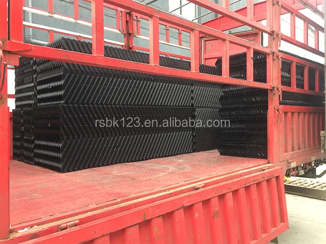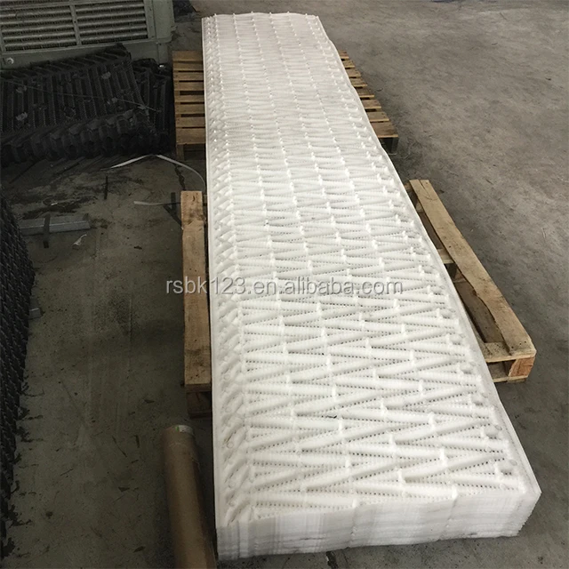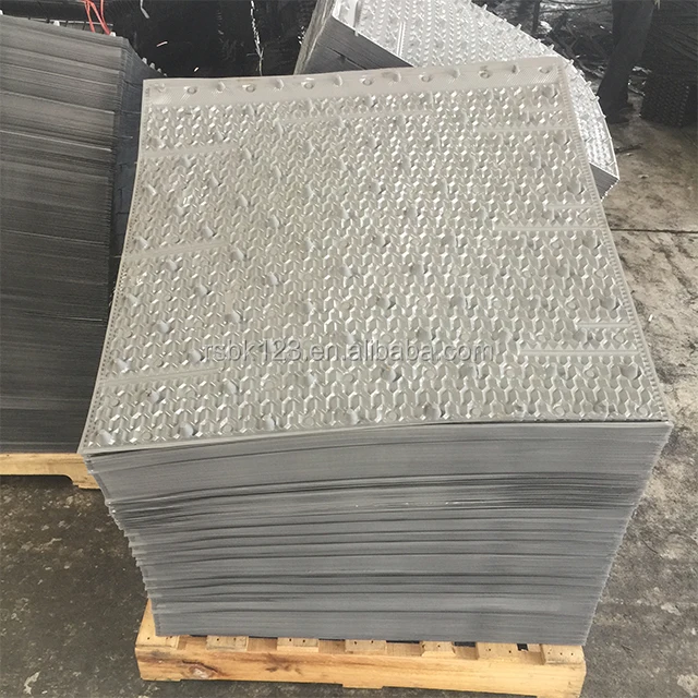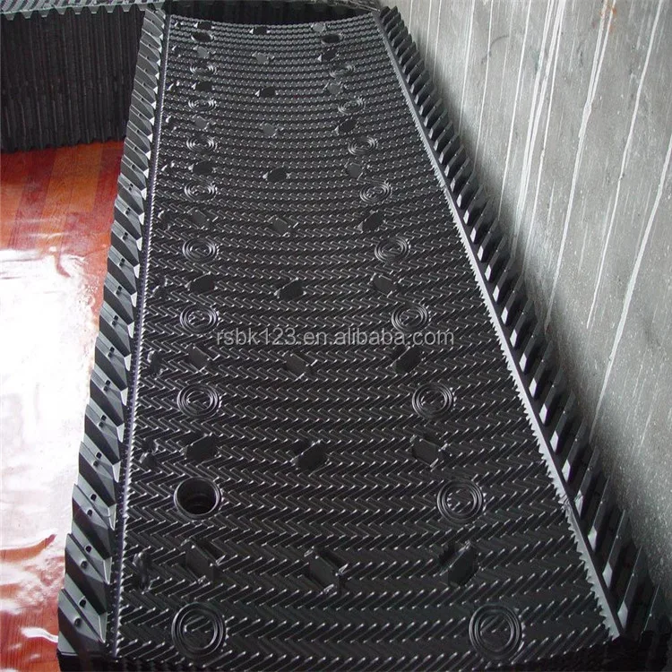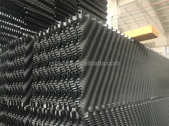 Counterflow cooling Tower Fill, also called counterflow cooling tower infill film media, is among those cooling tower fills of being designed into two types.It is one of the most important components for exchange of gas and water in cooling tower. It is the major parts to improve cooling tower working efficiency and make sure the economy and safe operation. With the development of the plastic industry, counter-current tower drench water plastic packing "S" shape ladder wave, inclined corrugated fills, which has the advantages of heat dissipation,durable, good performance, ventilated small resistance..etc.Based on the easy and other advantages it is widely used in different types of large,medium and small cooling towers.