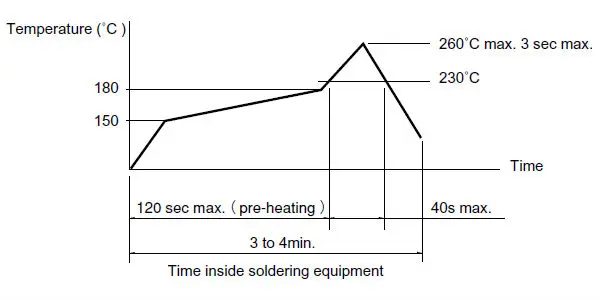 (1) The above temperature shall be measured of the top of switch. There are cases where PC board's temperature greatly differs from that of the switch, depending on the material, size, thickness of PC board's and others. Care, should be taken to prevent the switch's surface temperature from exceeding 260°C.