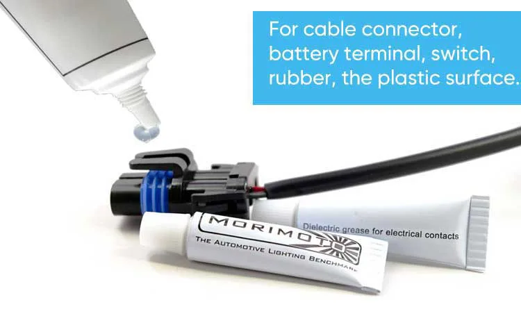 Used in places with high voltage including high voltage electrical connector, cable connector, switch accessories, battery connector, electrical connection components to prevent creepage and function as insulation, lubrication and waterproof sealing. Used for protection, sealing and lubrication between plastics and plastics, plastics and metals, metals and metals. |
