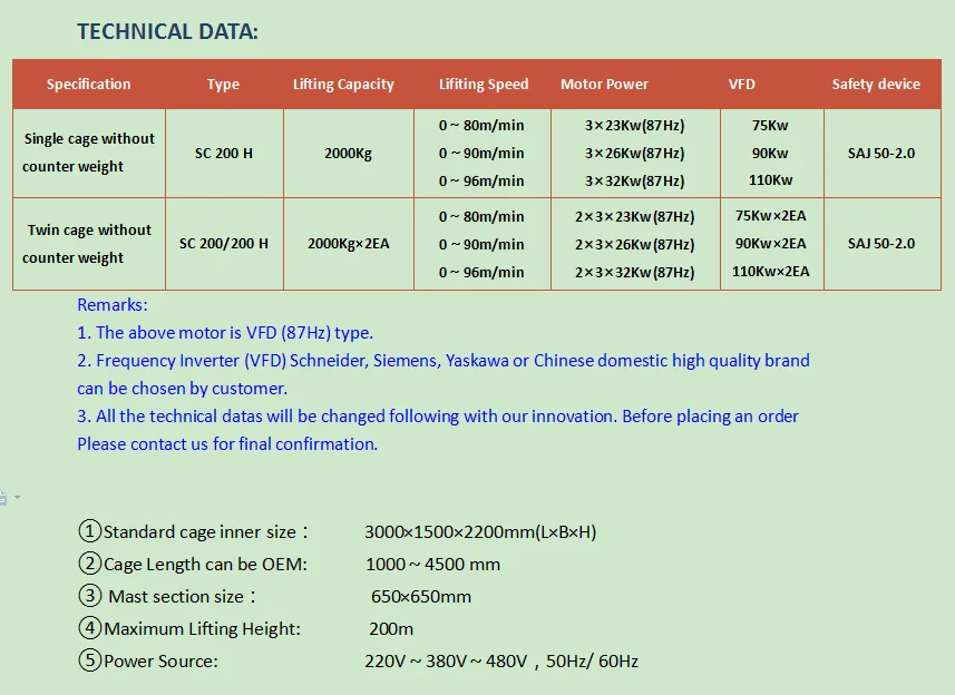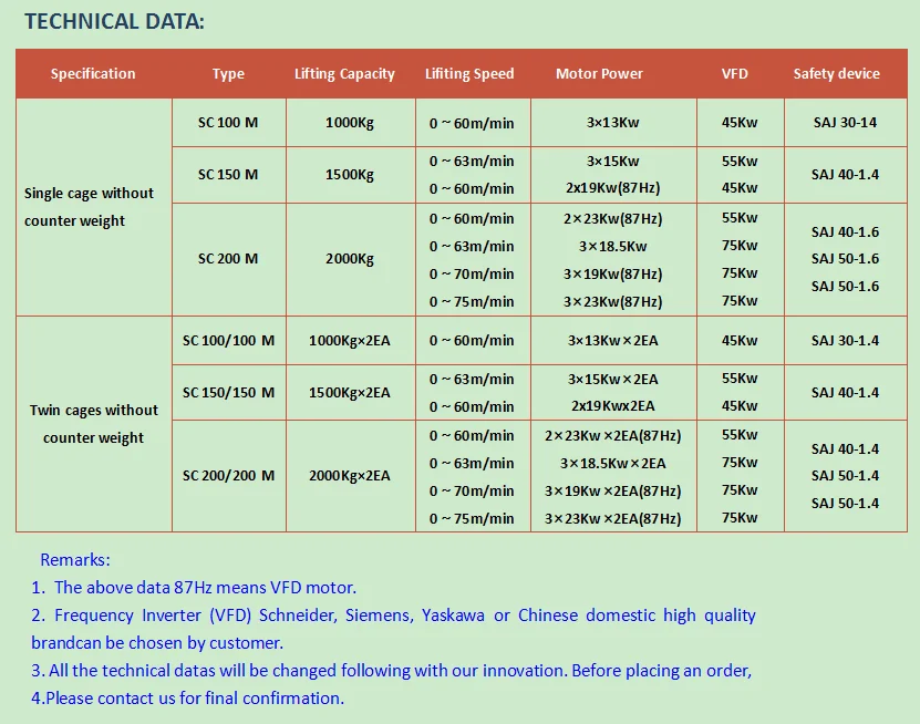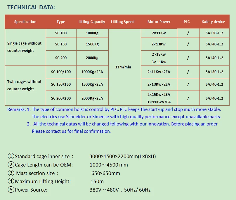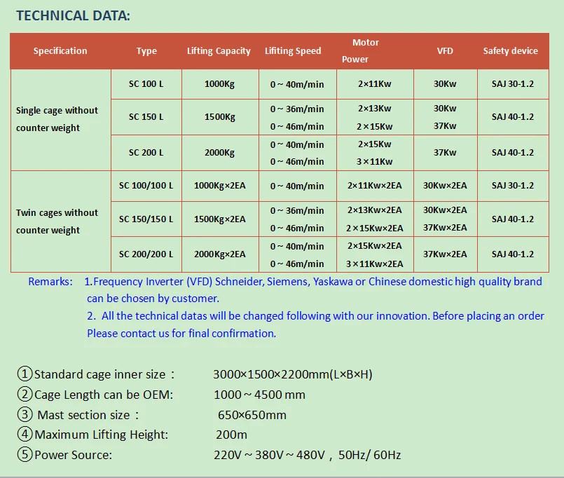 1. Персонал и материалы строительного подъемника: прямой тип Элекрический с постоянной скоростью. Обычные модели
