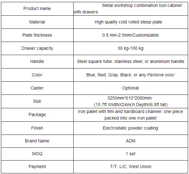 Комбинированный Инструментальный шкаф-это новейший продукт ADM, оснащенный центральным замком, гарантирует безопасность ваших инструментов. сталь с специальной обработкой, затем порошковое покрытие не ржавеет; Инструментальный шкаф может быть использован как единое целое или как часть интергации мастерской. Широко используется в электронике, прецизионной фабрике, фабрике по обработке пресс-форм, гараже и лаборатории.