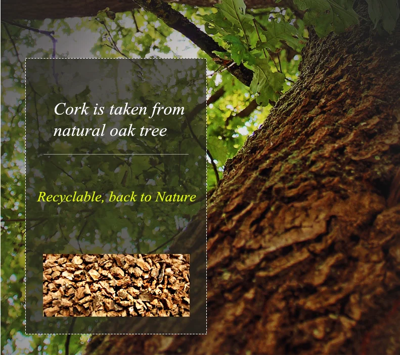 The cork is taken from natural oak tree, recyclable material, back to nature!