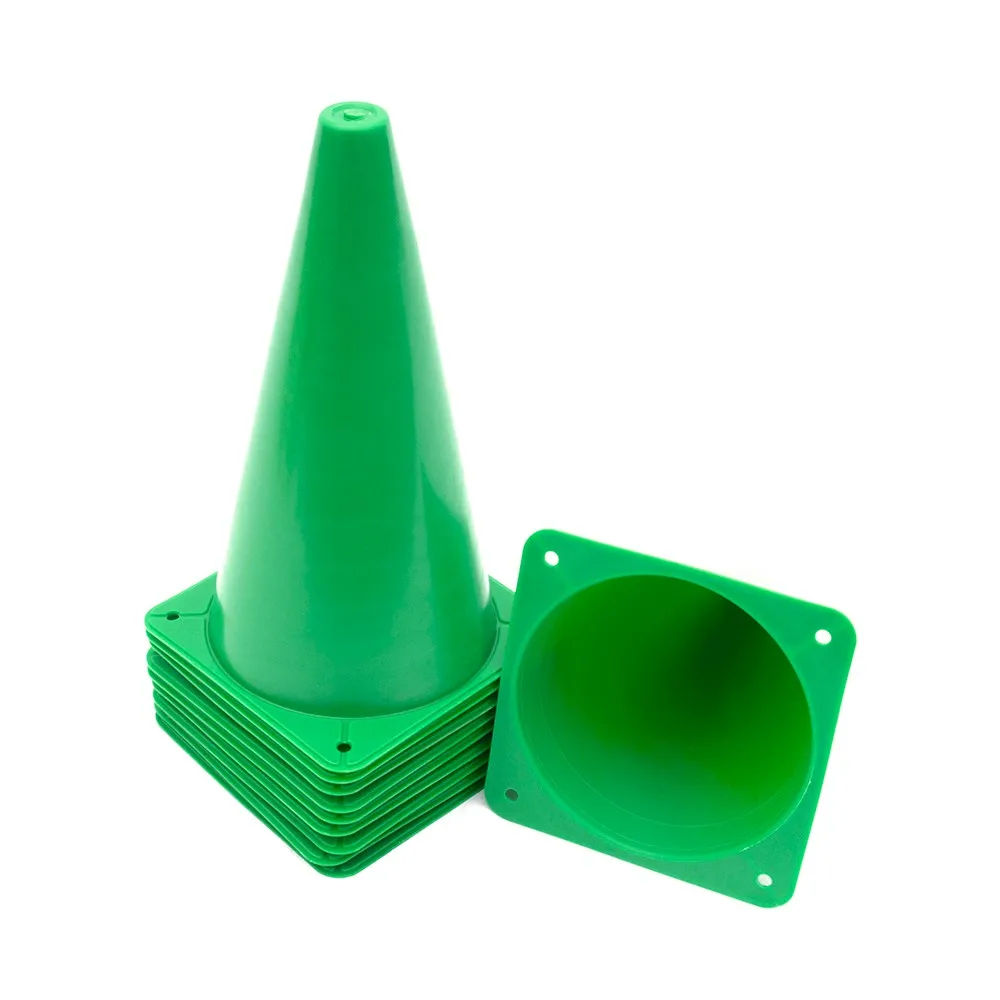 Set of 10 Soccer Cones. Perfect as soccer cones, agility and fitness marker cones. Also can be used as safety cones. Square bases are stable and wont tip over. Bright orange color makes them easily visible.