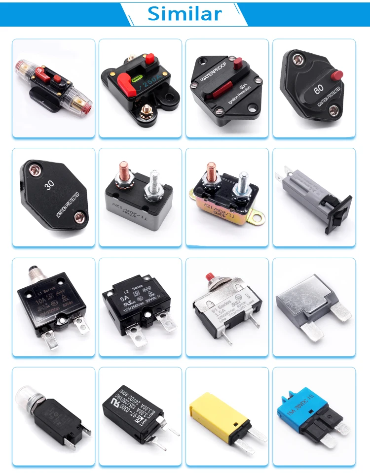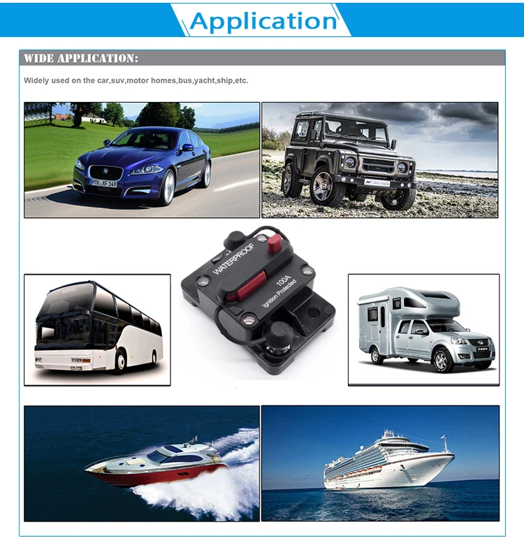 Автомат защити цепи продукция в основном используется для мобильного гнездо, штепсельная вилка, постоянного тока в переменный конвертер, ac/dc моторы и лебедочное устройство, дробилка для пластика, электромобили, самокаты автомобили вокруг под дождем, автомобильный подъемник, медицинское оборудование, все виды электрическая машина для резки, стерео оборудование, деревообрабатывающее оборудование, оборудование для фитнеса, измельчители бумаги, Электрическая чашка (глубокая тарелка) и небольшой генераторных установок и другие товары. Наша продукция экспортируется в Европу, Соединенные Штаты и Юго-Восточной Азии. На внутреннем рынке, а также в основном поддерживает с импортные товары; Экспорт предприятий.