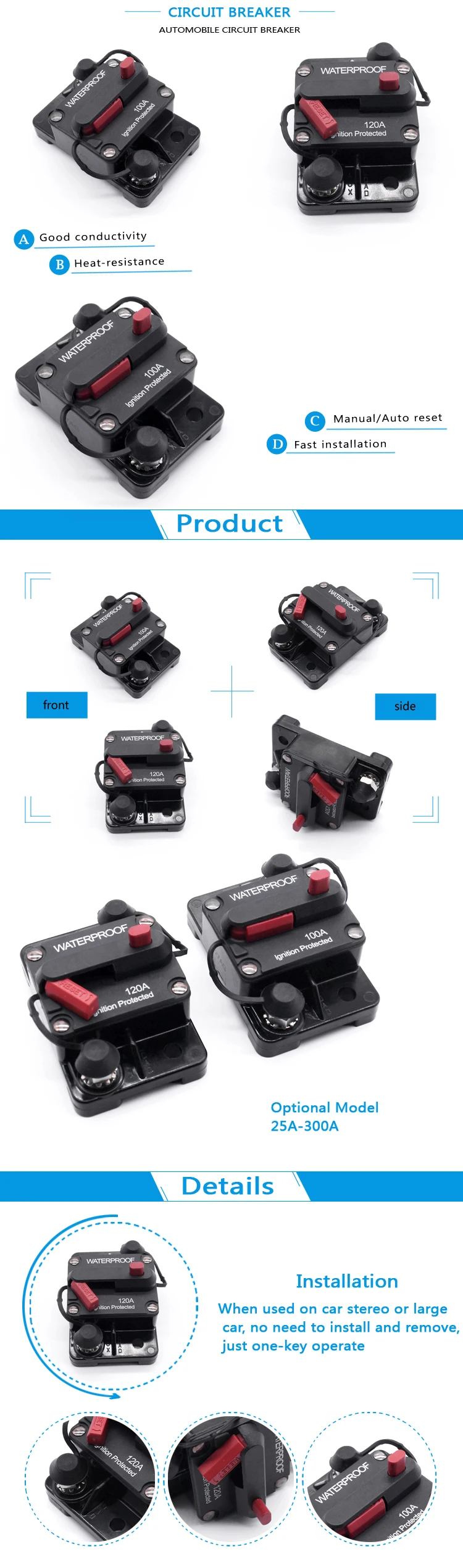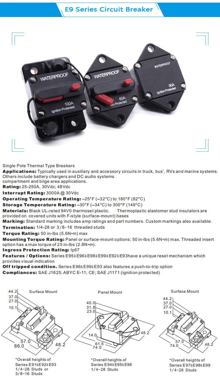 Высокий усилитель защита зажигания ручной автоматический сброс Водонепроницаемый Автоматическое устройство для защиты от перегрузки Автоматический выключатель для автомобиля лодка |