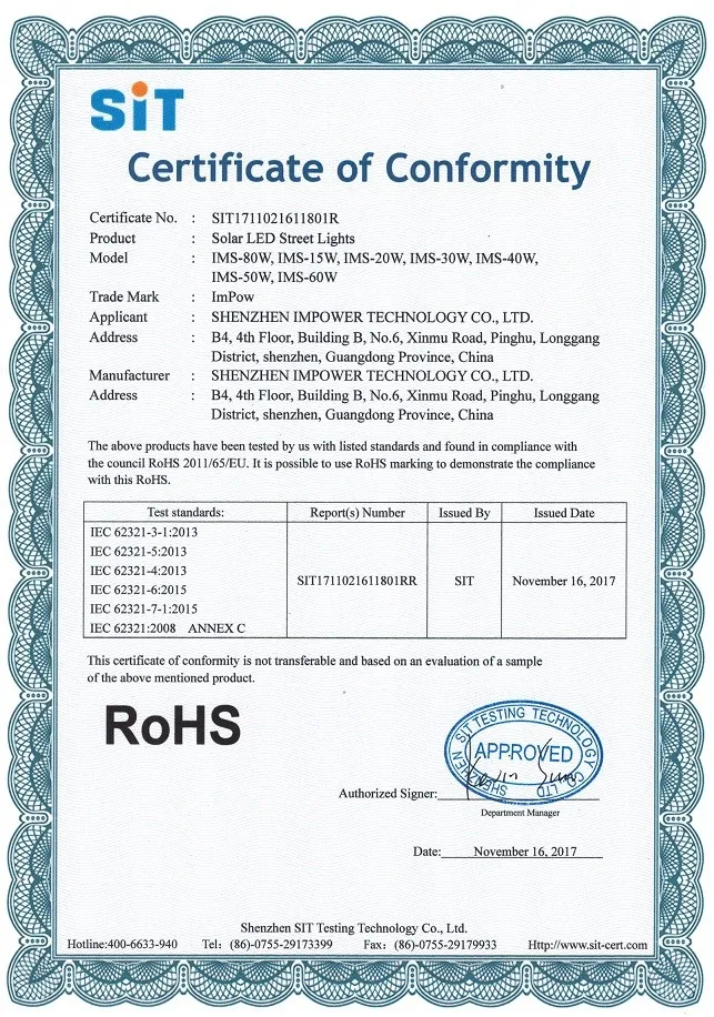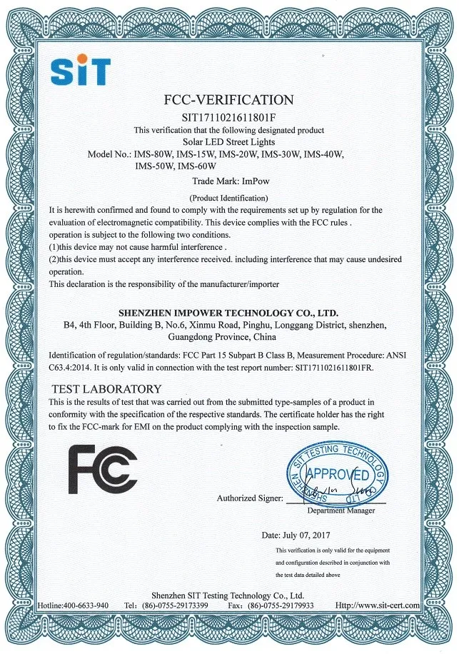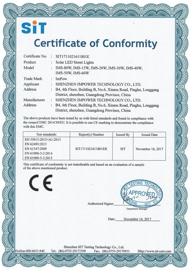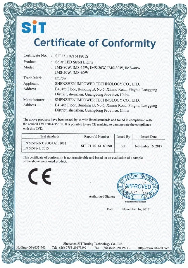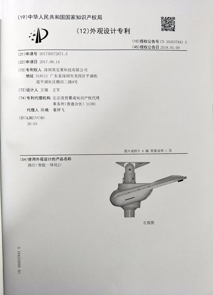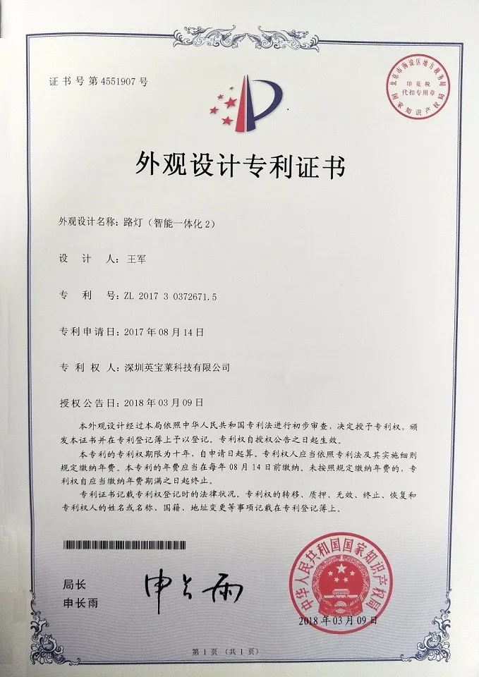 Led solar street light patent certification