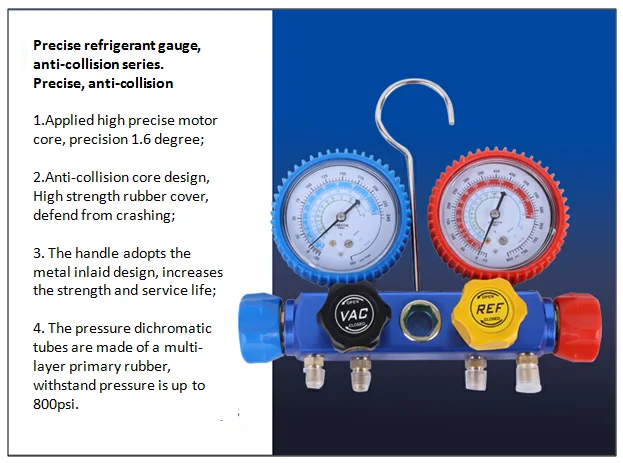 Этот 4 подъездных путей, алюминиевый корпус R410a датчик хладагента набор для вентиляции и кондиционирования воздуха набор коллектора широко используется для автомобильного или бытовые системы кондиционирования воздуха; холодильник, кондиционер и промышленного холодильного оборудования.