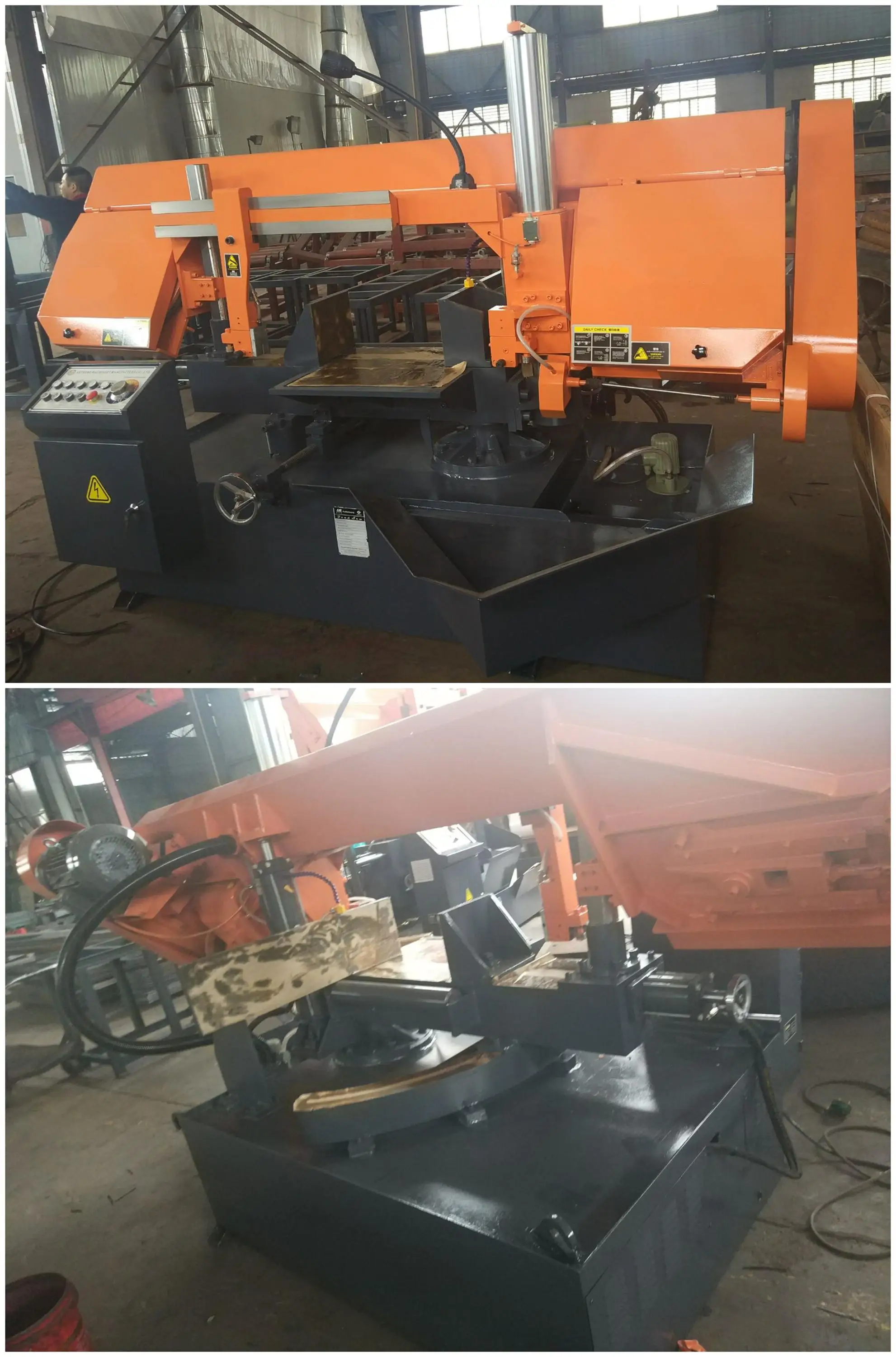 Large scale band saw machine adopt dual cylinders control , cutting/sawing stable ,high precision