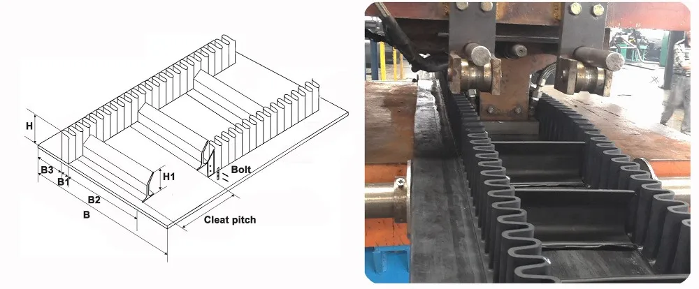 -- Ленточный конвейер боковины состоит из трех частей: Базовая лента, боковина и бутсы