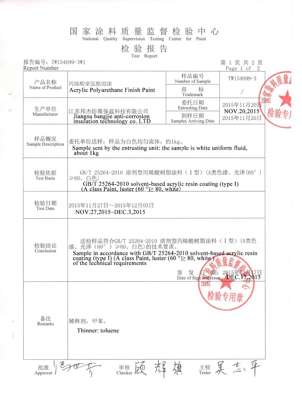 В основном изготовлено гидроксильной акриловой кислотной смолой, антикоррозийных пигментов, а также обычно используется в качестве финишной краски для стальной подложки, как: