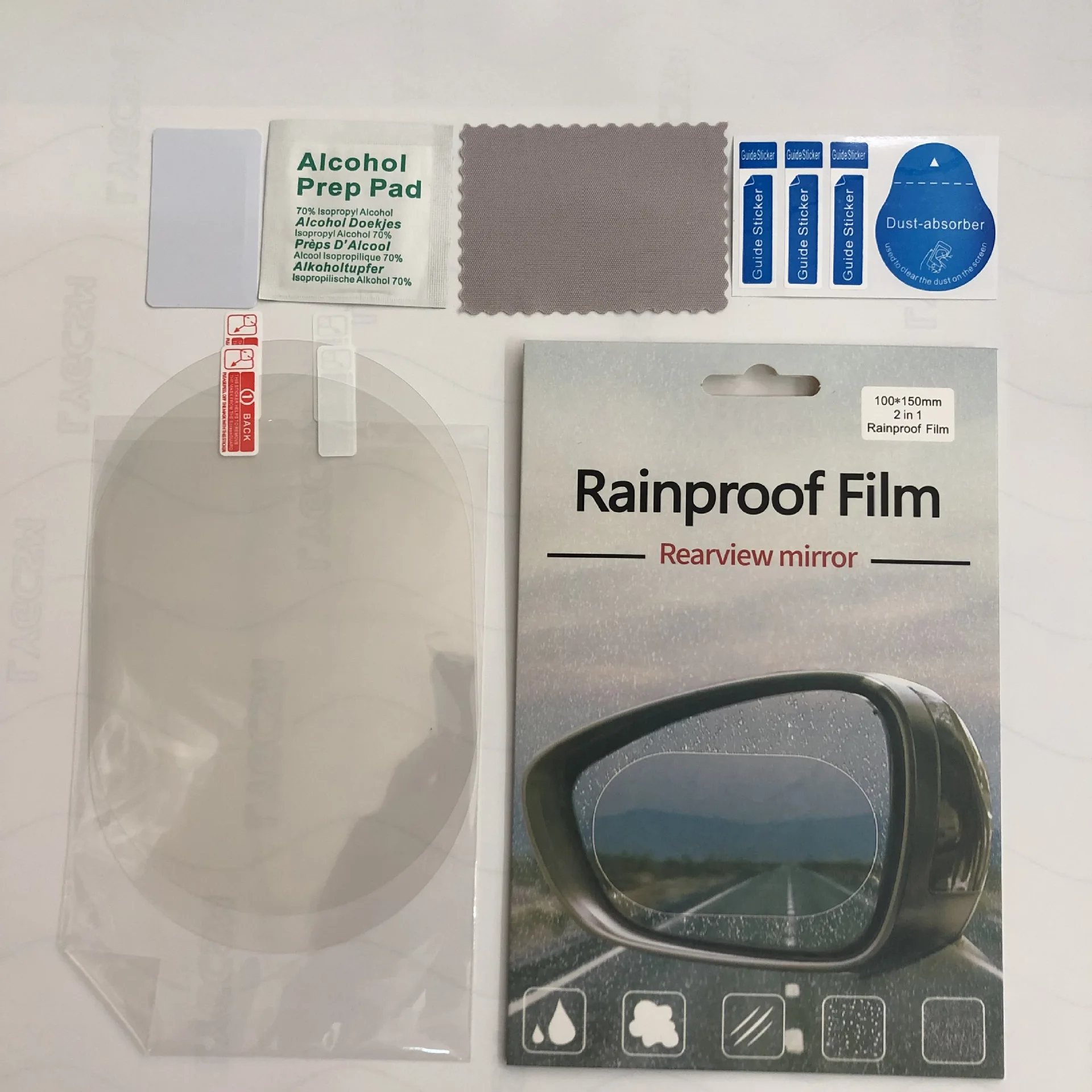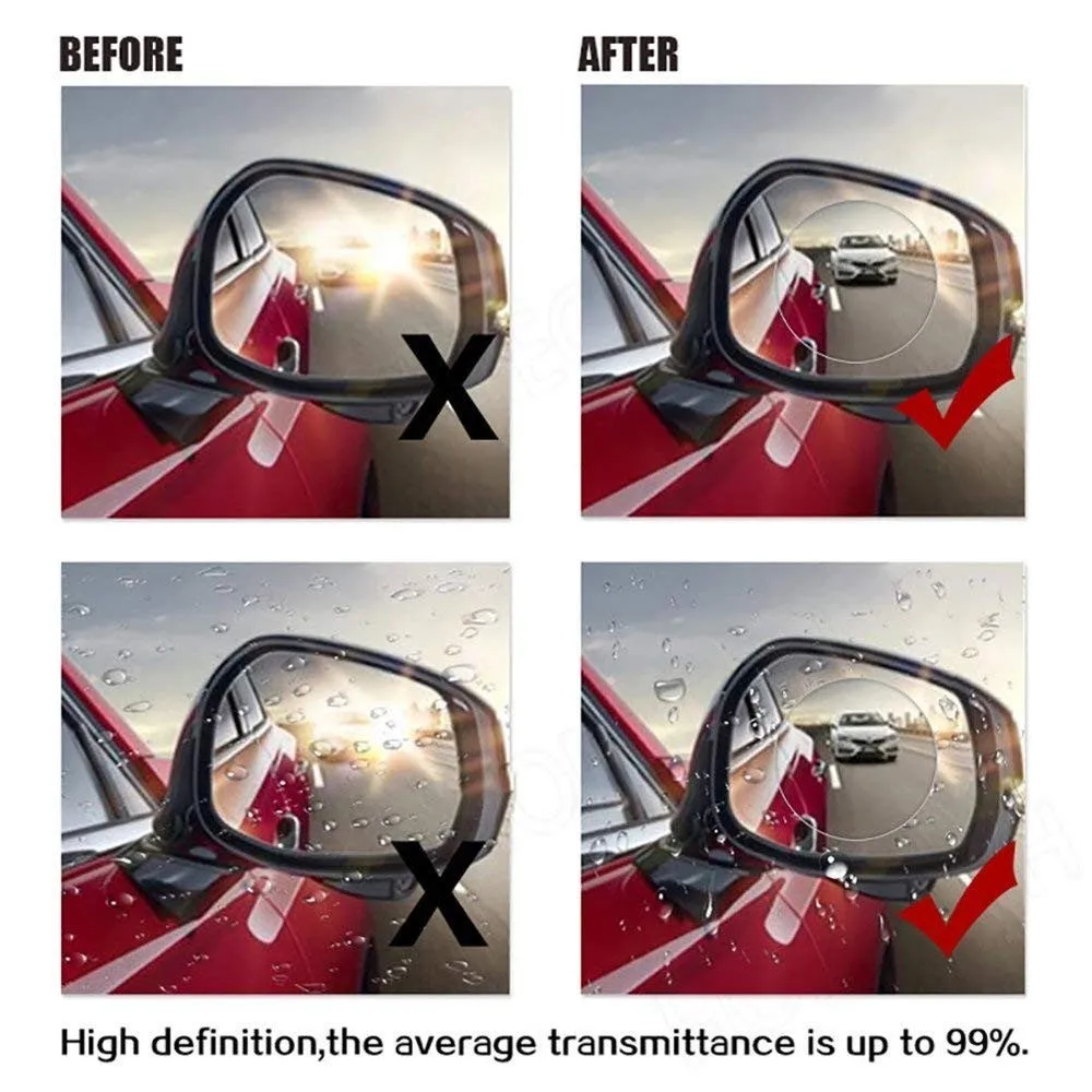ANTI FOG FILM: It could clarify the view area for averting possible danger, for example, helps you to forecast the next surroundings when passing or changing lanes. It can protect your driving sight line in the rainy day.It is an innovation and it can solve your trouble that you can't see the reaview mirror clearly in the rainy day.It's waterproof and anti-fog with good effect