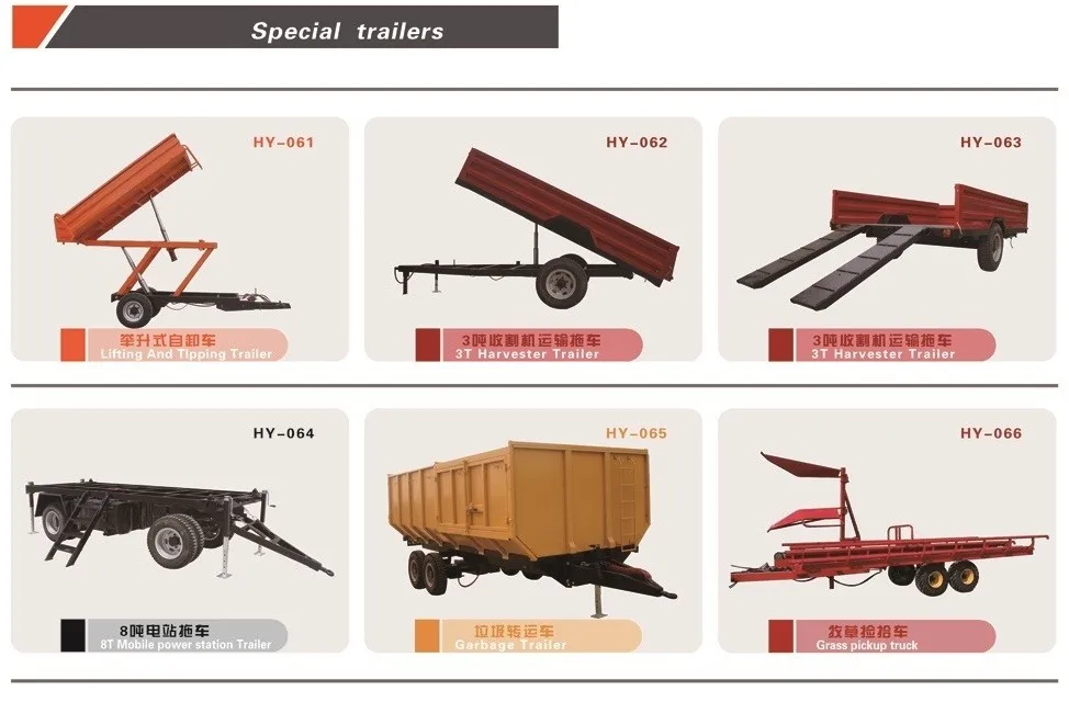 Наши сельско-хозяйственнный прицеп товары, серия богато, содержит прицеп мультикультиватора, колесный трактор прицепов и европейского стандарта с прицепом и специальный прицеп, а также может удовлетворить потребности большинства клиентов.