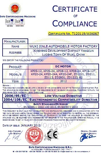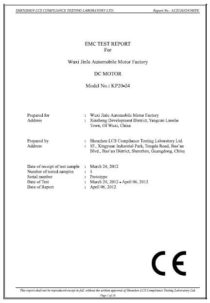 О: наши двигатели постоянного тока проходятCE, EMC, LVDСертификаты, поэтому они могут быть проданы по всему миру безопасно!