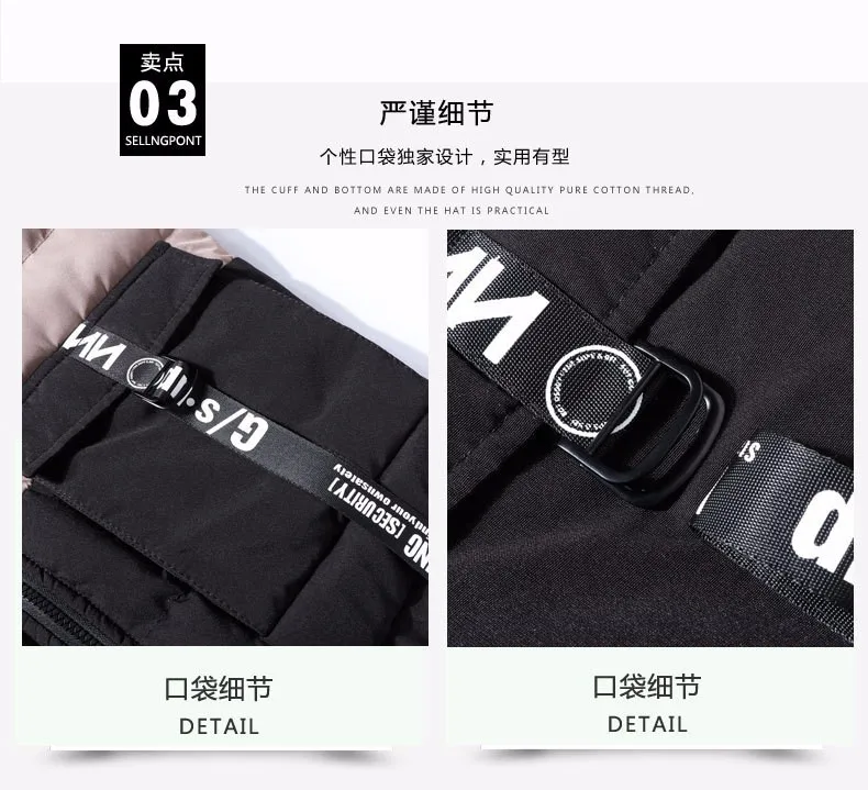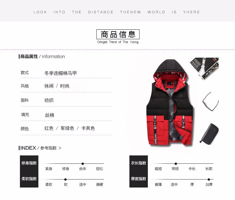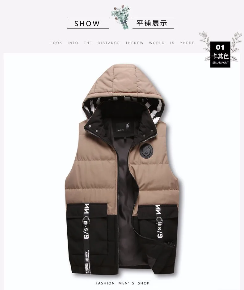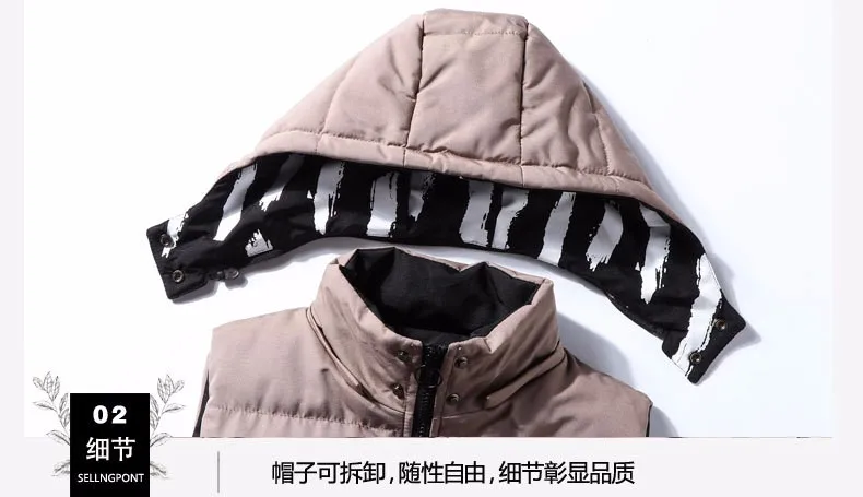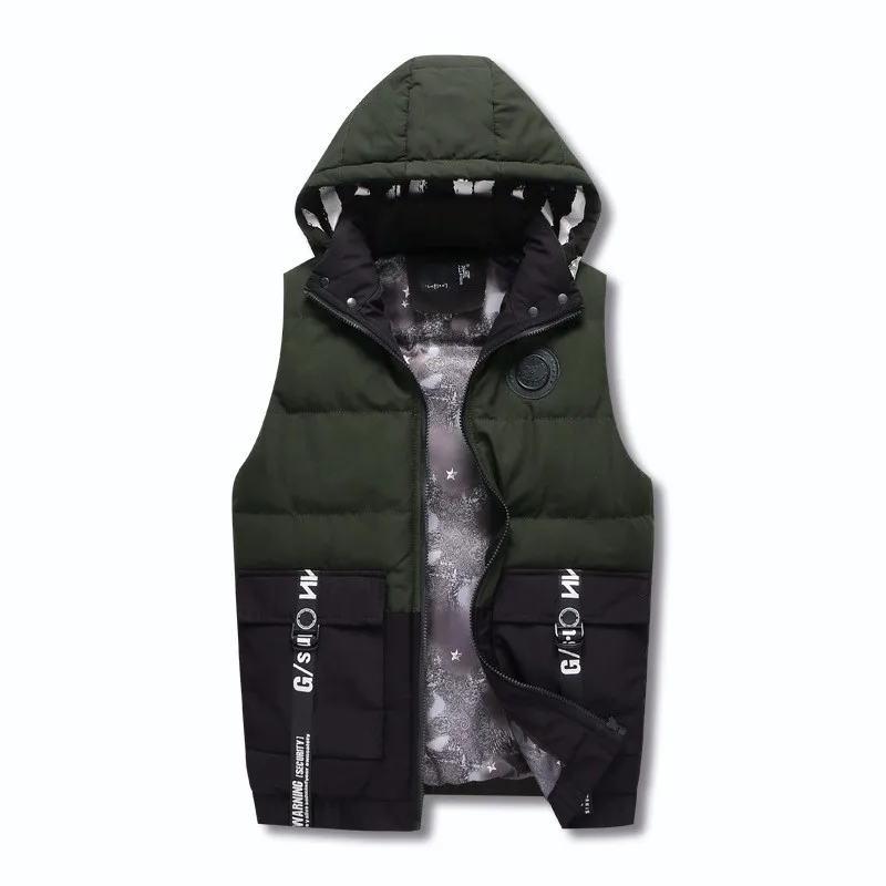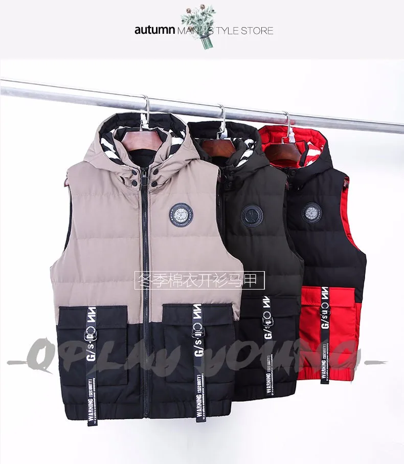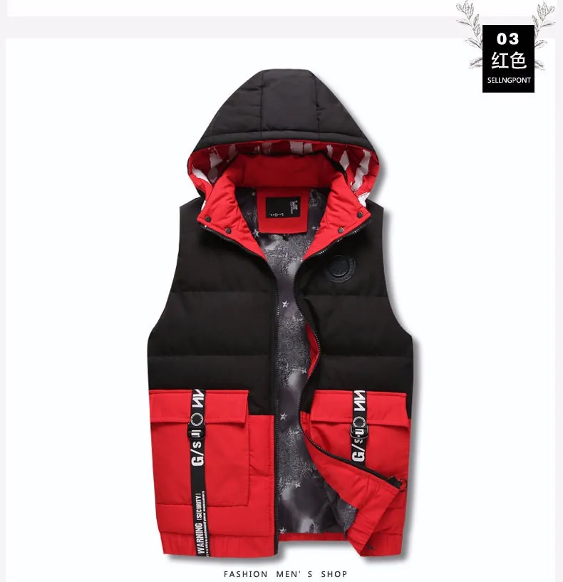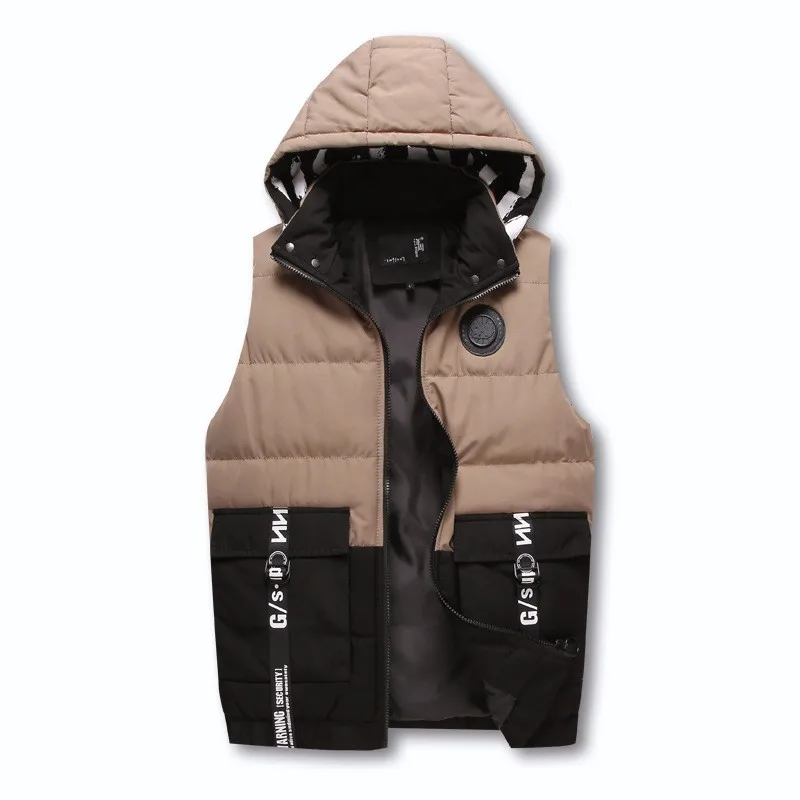OEM men's winter zipper, hooded cotton padded jacket and cotton vest sleeveless