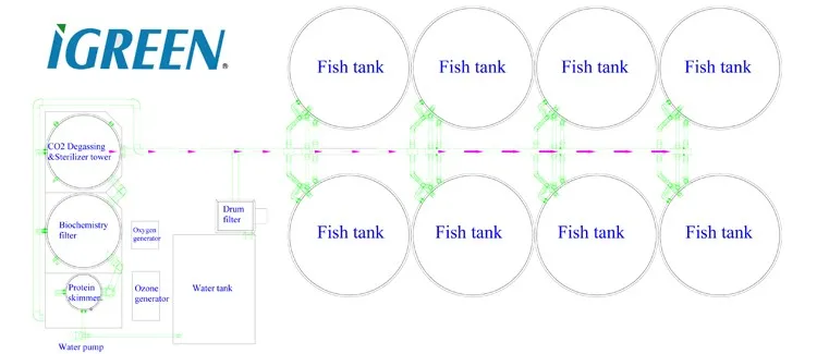 The main benefit of RAS is the ability to reduce the need for fresh&clean water while still maintaining a healthy environment for fisheries and it’s a kind of high densities cultivation method; and the yield is 5-6 times higher than common pond farming; higher survival rate, less influence to the environment etc.