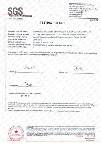 SGS отчет о тестировании супер абсорбирующего полимера