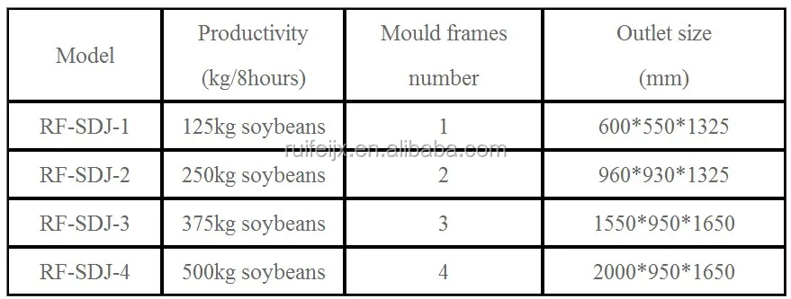 It is made of SUS304 stainless steel material, and consist of cylinder, tofu tray, plate, platform. It has advantages of simple operation, good stability and suitable for small tofu factory.