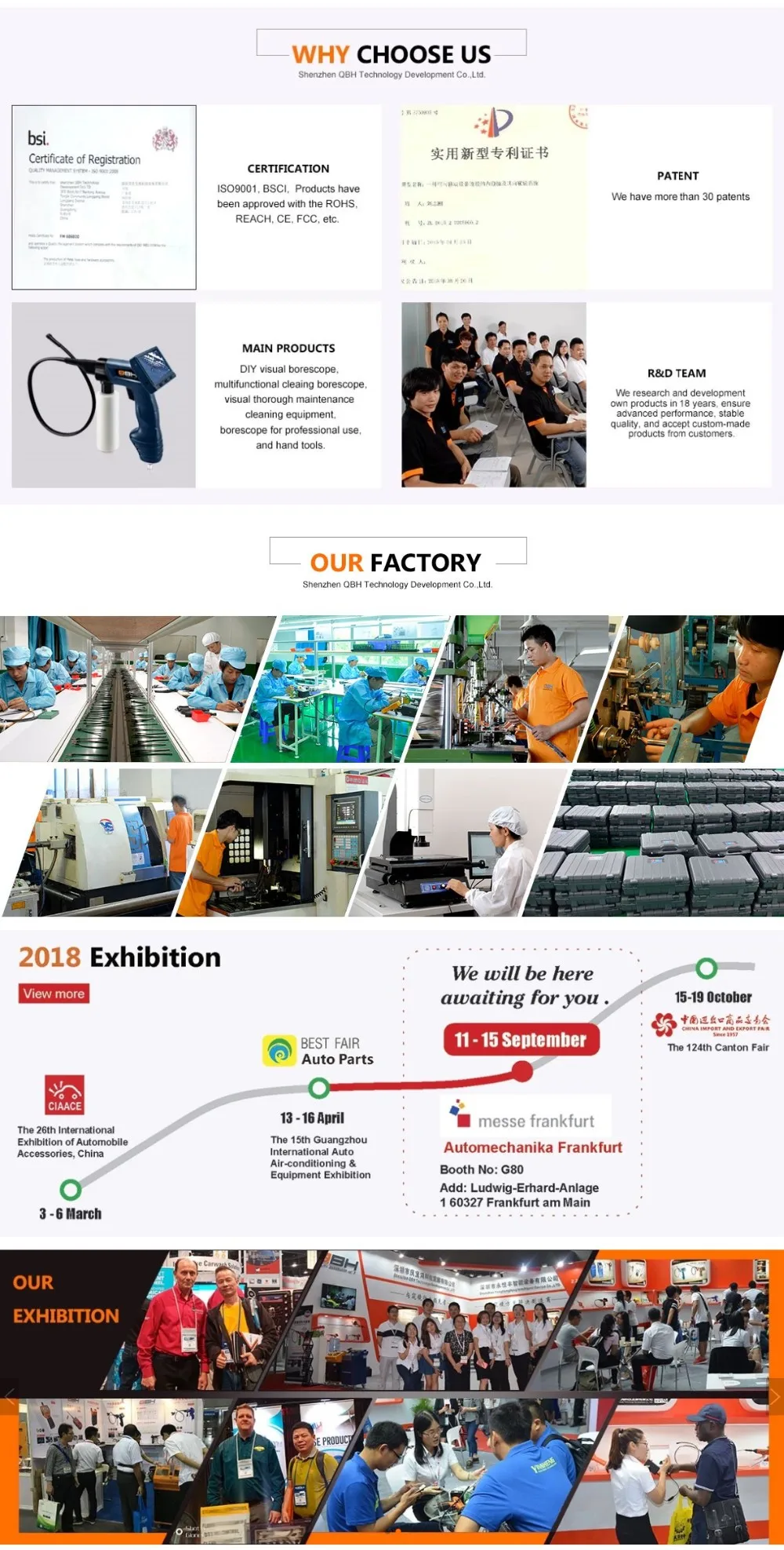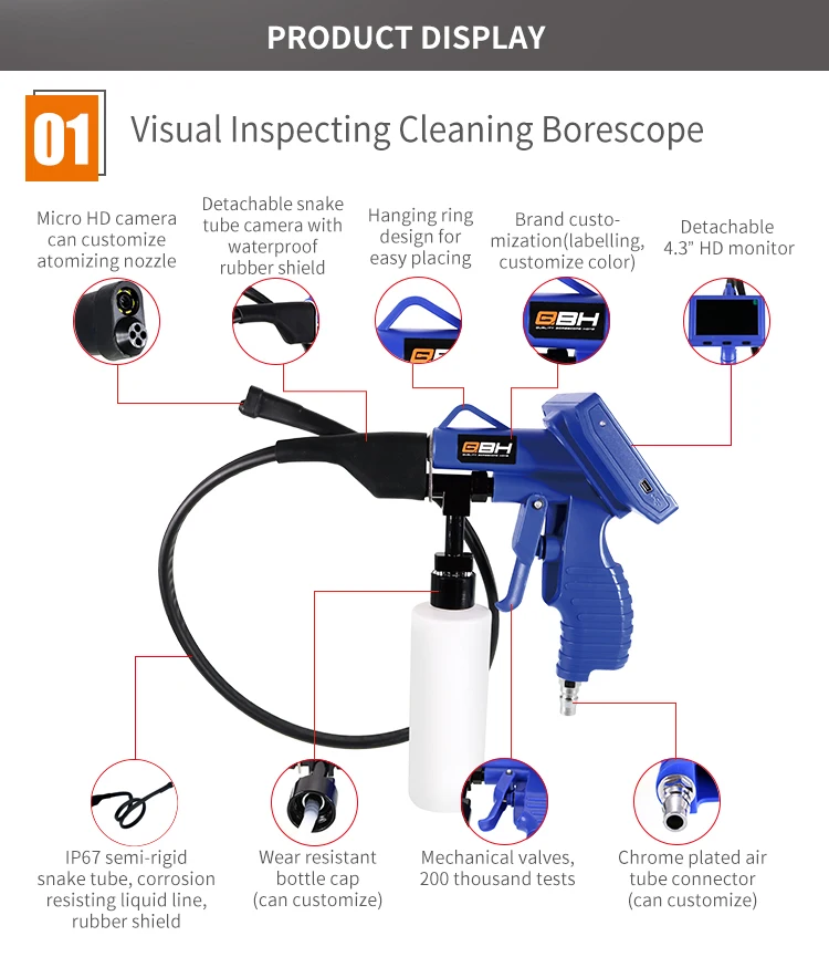 1.QBH AV7821 cleaning borescope for car air conditioner evaporator cleaning