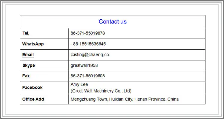 Наша гарантия на литье составляет один год, в течение которого техническое обслуживание является бесплатным.
