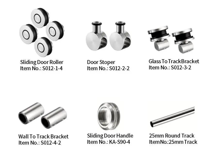 Аксессуары Кол-во | 4 колеса, 2 настенных крепления скобы для труб, 2 стеклянных стенок скобы для труб, 2 Дверных стопоры, 1 дверной направляющий и 1 круглая ручка для дверей |