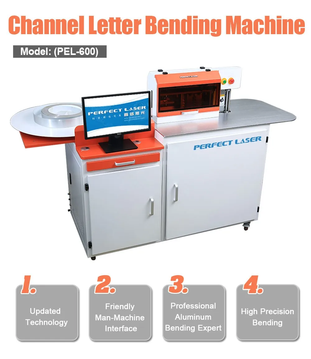 PEL-600 automatic channel letter bending machines is independently researched and developed by Perfect Laser. The series of automatic channel letter bending machines serves all walks of life in the world, leading the market share and winning the attention of users in more than 80 countries around the world. The copper channel letter bending machine not only can produce 3 meters of exposed characters, but also this aluminium bending machine can be used for various profiles, edgeless words, epoxy resin characters, unsaturated resin characters, and various small characters.