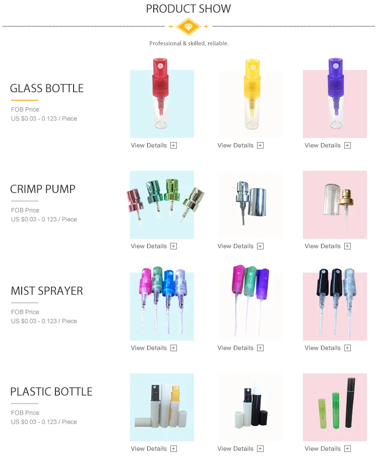 Plastic bottles,Glass bottles,Aluminum mist sprayers,Plastic mist sprayers,Caps, cream jars and PET bottles.