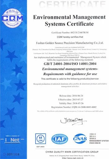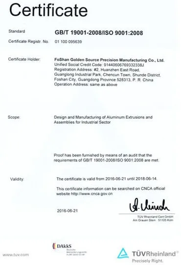 Foshan Golden Source Precision Manufacturing co., Ltd основана в 1991 году, специализируется на разработке и производстве высокопрочных промышленных алюминиевых профилей высокой точности/прецизионных деталей/алюминиевых товары, связанных с такими отраслями, как высокоскоростные поезда, метро, автомобили, водные ремесла, компьютеры, телекоммуникации, мебель и украшения.