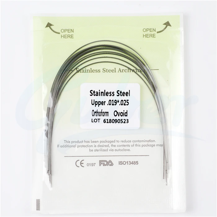 Reverse curve arch wire is 2 pcs per pack, it is made of high quality Ni-Ti, also have round and rectangle, a lot of different size to choose.