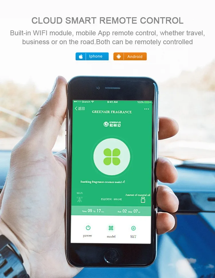 2: чехол для телефона удаленное управление с помощью приложения. Управление с помощью мобильного телефона интеллигентая (ый) управления, где бы то ни было, в любом месте и в любое время, где бы то ни было, для того чтобы контролировать ароматный окружающей среды. Инновационный пульт дистанционного управления уровня масла системы обнаружения позволяет машиной в руке эффективным способом доставки, который гарантирует использование без лишних нервов.