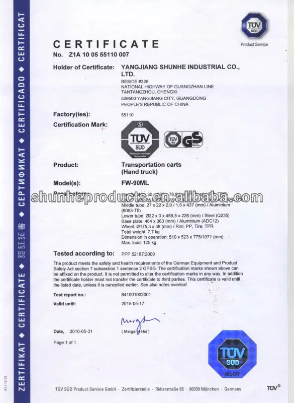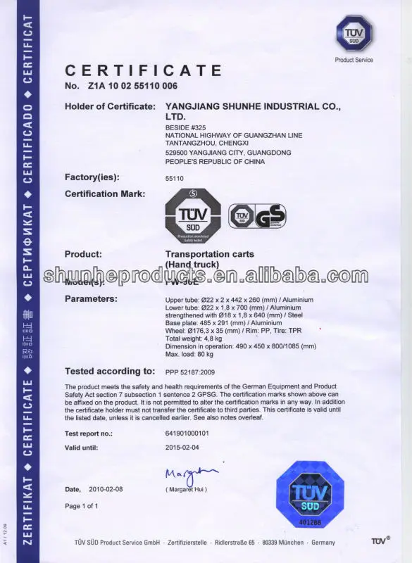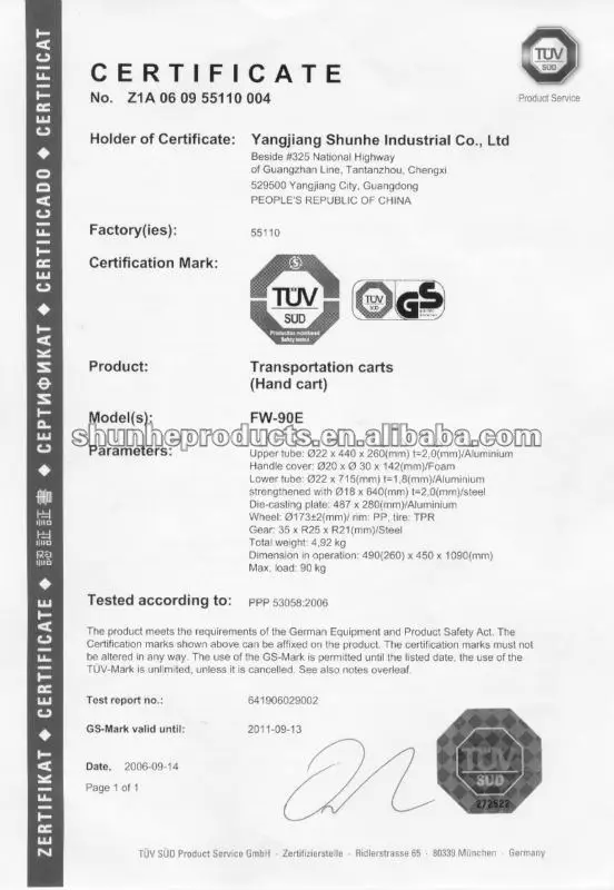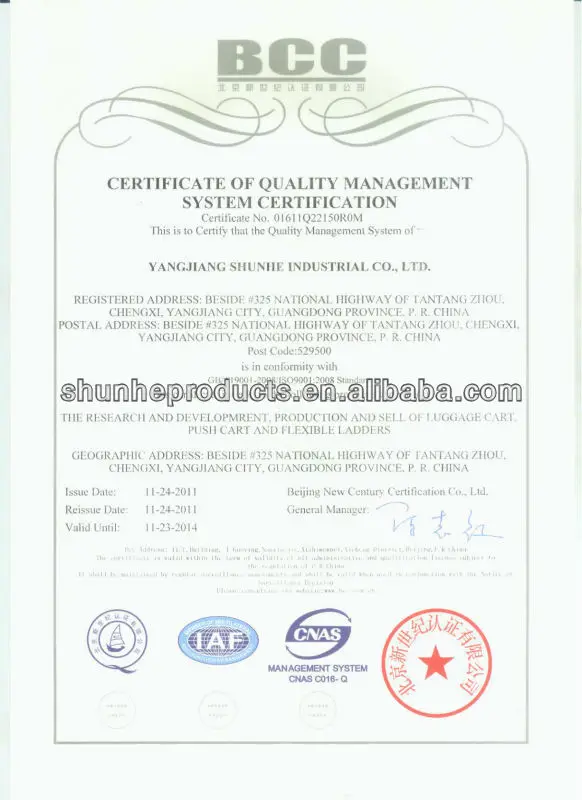 Shunhe is an ISO9001:2008 certified manufacturer specialize in aluminum & steel hand trucks, hand trolleys, platform hand trucks, luggage carts, multi-functional hand trucks, wheel barrows, ladders, scaffolds, casters & wheels, etc of over 90 items more than 20 years. As a top aluminum &steel trolleys product maker, Shunhe has invested huge capital for having better machines equipment of manufacturing aluminum&steel trolley.