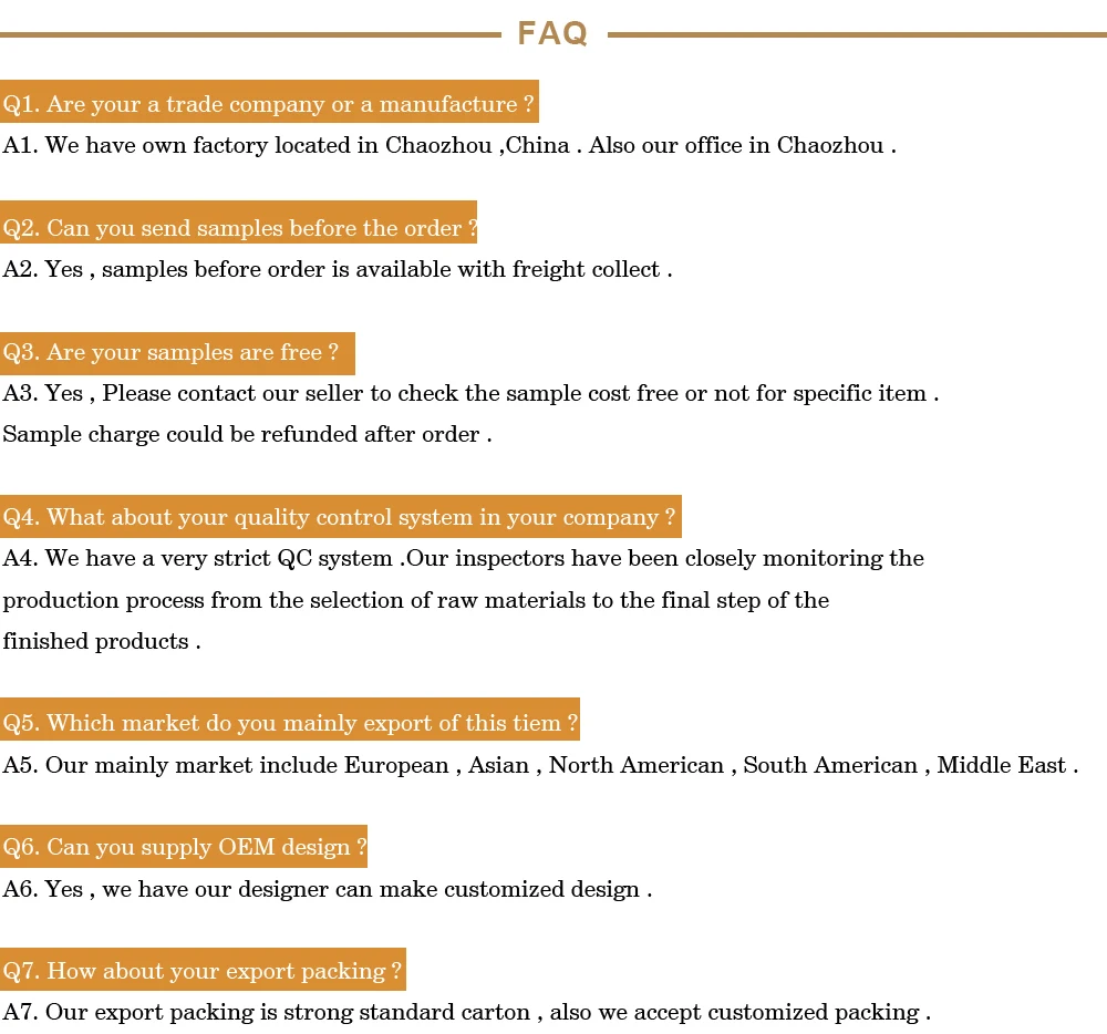 Другие Товары в наличии: | Фарфоровые и керамические предметы домашнего обихода, такие как чайный сервиз, столовый сервиз, тарелка, чаша, кружка, посуда для выпечки, набор фондю и так далее. |