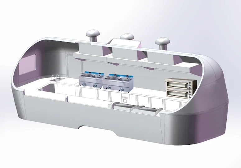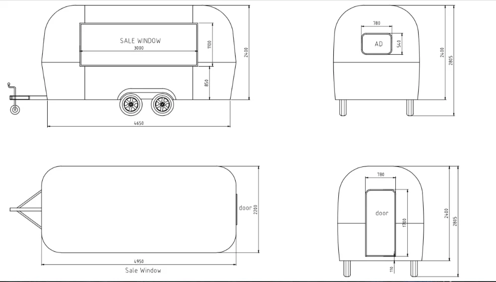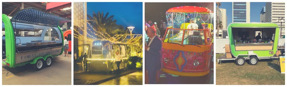 1. Название: Волоконно-Стекловолоконный цветной окрашенный мобильный трейлер для перевозки пищевых продуктов airstream