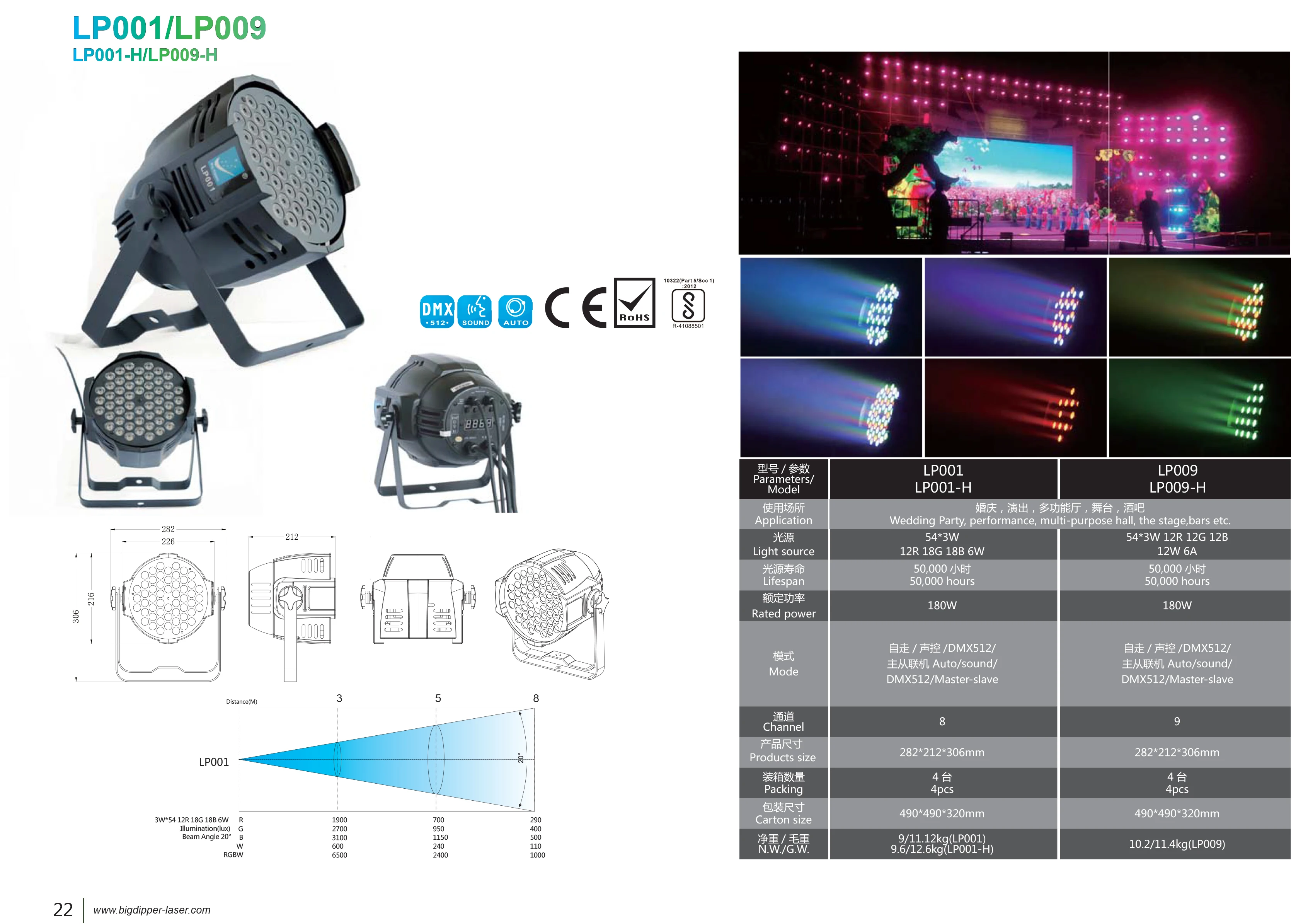 DMX channel: 8 Packing: 4pcs/carton