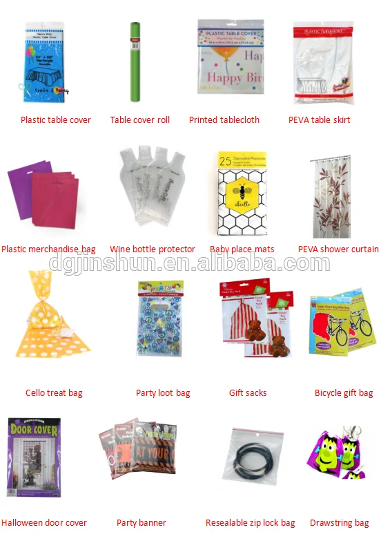 Мы были Wal-mart проверенной фабрики (Wal-mart ID номер: 36125644) и наша система управления была проверена SGS. Наши товары, которые включают скатерть, праздничная подарочная упаковка, мешок виолончели, праздничный баннер, сумки для футболок, сумка с замком-молнией, сумка с ручкой, сумка для покупок, сумка с выемкой, пузырчатая сумка, самоклеящаяся сумка, плоская сумка, Курьерская сумка, пластиковая сумка с крючками, сумка для вина, И другие праздничные вечерние товары были экспортированы во многие страны в Европе, Америке и Юго-Восточной Азии, мы создали долгосрочные деловые отношения с некоторыми иностранные торговые сети супермаркетов и оптовых торговцев, таких как Wal-mart, dollartree, Walgreen и т. д.