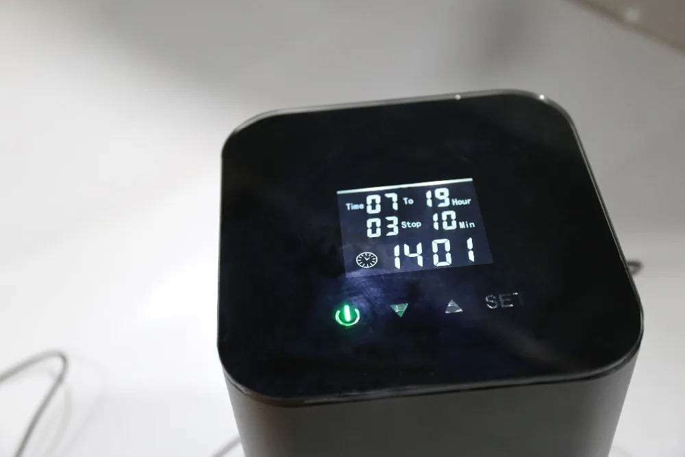 Интеллектуальная Кнопка сенсорного экрана, простая в эксплуатации, с программой синхронизации и функциями памяти, не нужно повторно регулировать. Вы можете установить любую настройку для работы в течение нескольких минут, остановить на несколько минут, это может помочь вам контролировать концентрацию аромата, а также может сохранить масло.