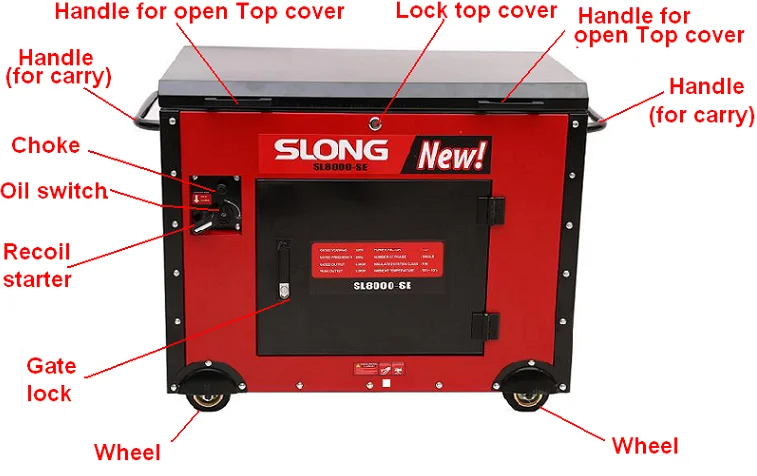 Note: 1) this silent gasoline generator output can produce: 3.5/5kw/6kw/7kw/8kw 2) Huayi/ruixing brand carburetor, good quality one control fuel consumption, save user`s cost. 3) Aluminum OHV, V type Cylinder head new technical extends engine life time. 4) Fuel tank capacity 25L or more as yours requirement, make sure running time more than 8 hours 5) Generator if keep runing output will not come down, inside the temperature will not too hot to stop generator. 6)Key start with battery, 4 wheels, 3 in 1 V.F.T meter, overload protector, with oil alert. 7) Less noise will not disturb your life . 8) 2 Years warranty (not include daily maintenance parts). 9)Delivery by ship only due to its heavy weight (request you must have import license) |