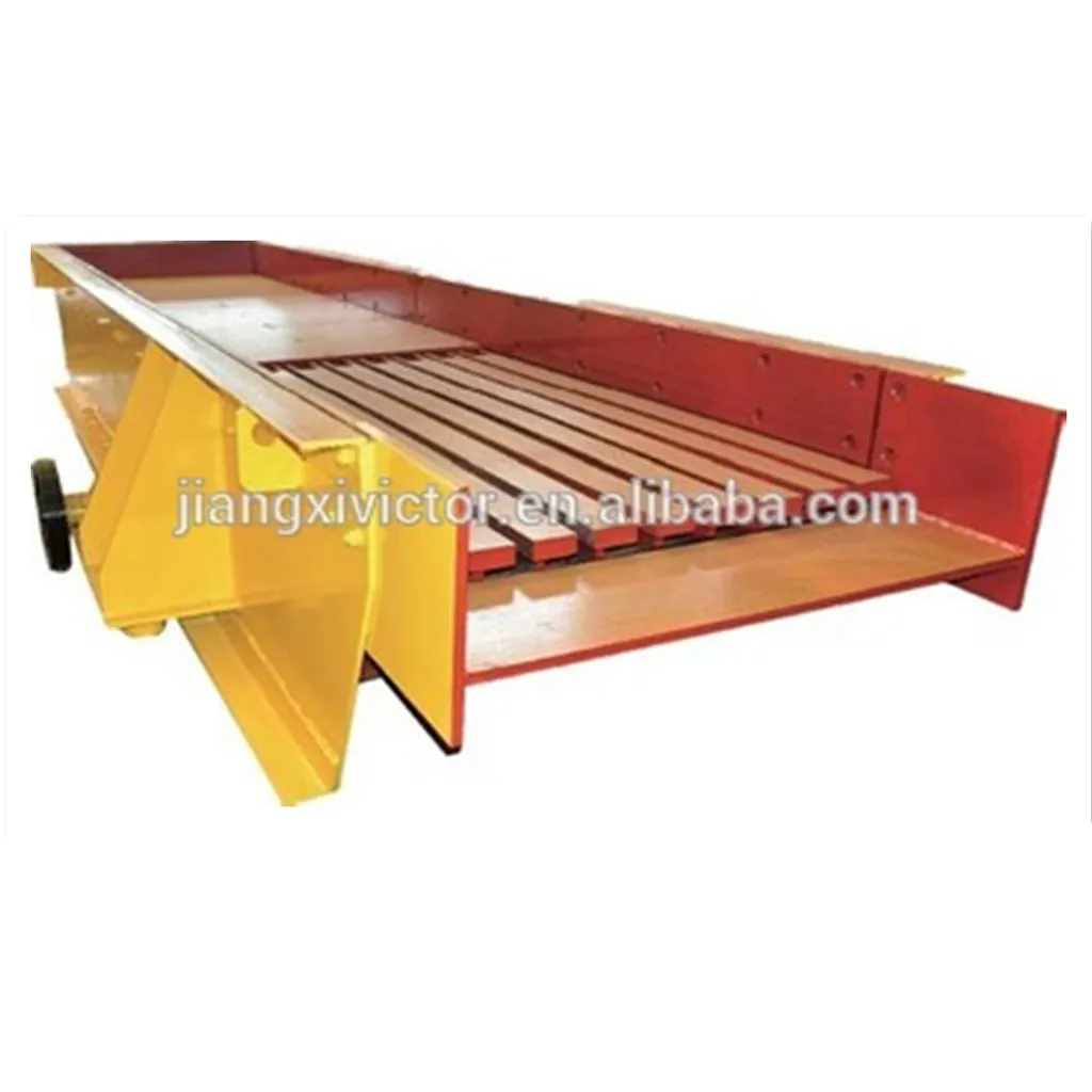 Вибрационный питатель используется для передачи материалов большого размера и гранулированных материалов из бункера в приемное устройство равномерно, периодически и непрерывно в производственном потоке и для подачи материалов в дробилку непрерывно и равномерно также для экрана материалов в производственной линии песчаника. Вибрационный питатель гризли широко используется для соответствия дробления и просеивания оборудования во многих отраслях промышленности, включая металлургию, угольные шахты, минеральные выделки, строительные материалы, химикаты, измельчения и т. Д.