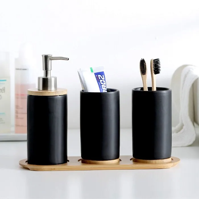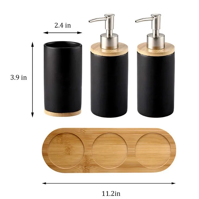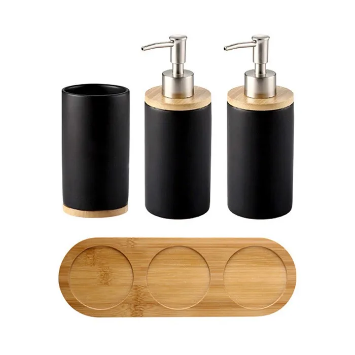 Название продукта | Керамический черный набор аксессуаров для ванной комнаты с бамбуковым подносом |