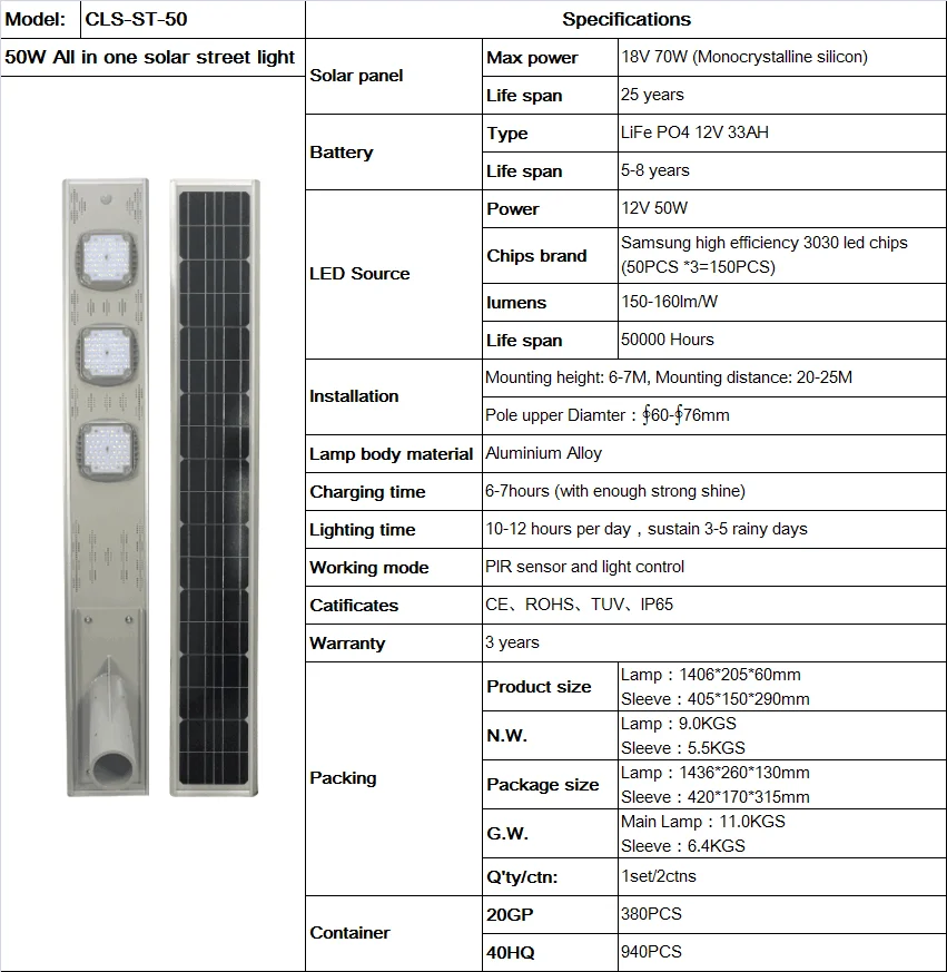 1.Integrated design,all in one solar LED street light, solar panel,Led chips, battery,cotroller,motion sensor,etc, all in(on) a light,without extra cable, save shipping cost and Easy to ship,carry and install.