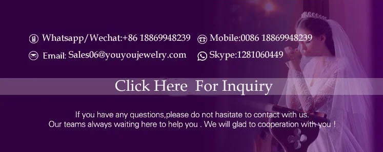 Yiwu Youyou Jewelry CO., LTD является профессиональным производителем ювелирных изделий и модных аксессуаров, опытной торговой компанией, а также надежным агентом, расположенным в Иу, Китай. ИУ известен как крупнейший международный маленький торговый город в мире. Товары включают повязки на голову, гребень для волос, заколки для волос, корону, тиару и другие аксессуары для волос и модные украшения. При поддержке наших собственных фабрик, богатый опыт в тенденции моды, и хорошие отношения с большим количеством fashion-продукт производители, мы можем предоставить много высококачественные товары по конкурентоспособным ценам, а также внимательные услуги для клиентов. Мы предлагаем высококачественные товары и материалы в широком диапазоне стилей. Они созданы, разработаны и изготовлены здесь, в Китае, нами и доступны по конкурентоспособным ценам. Наша миссия состоит в том, чтобы заслужить доверие наших клиентов, обеспечивая превосходное обслуживание клиентов. Мы хотим, чтобы вы чувствовали себя информированными, ценными и уверенными в ваших покупках и гордились нашими неустанными усилиями по предоставлению добросовестного обслуживания всем нашим покупателям.